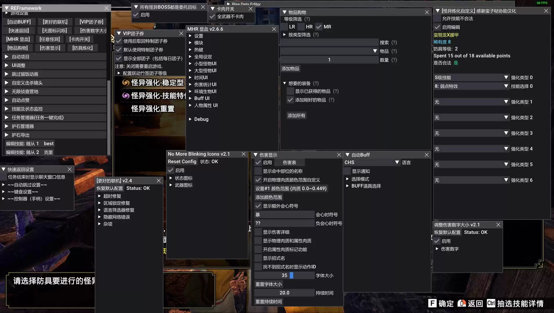以下是模组详细,均可在N网搜索名字。我在MonsterHunterRise\reframework\autorun路径下放了txt,和下方文本一致。