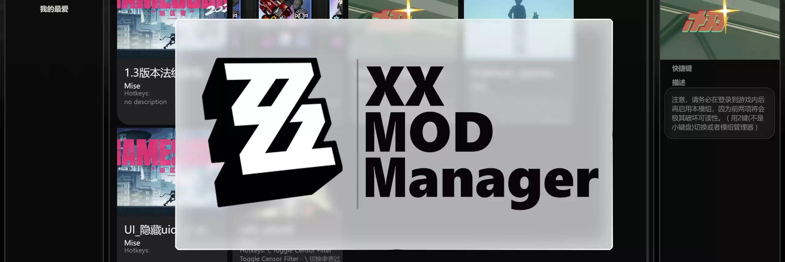 这不是教程贴,教程贴在:【强烈推荐】Mod管理器XXMM使用教程 - 绝区零MOD - 踩蘑菇社区