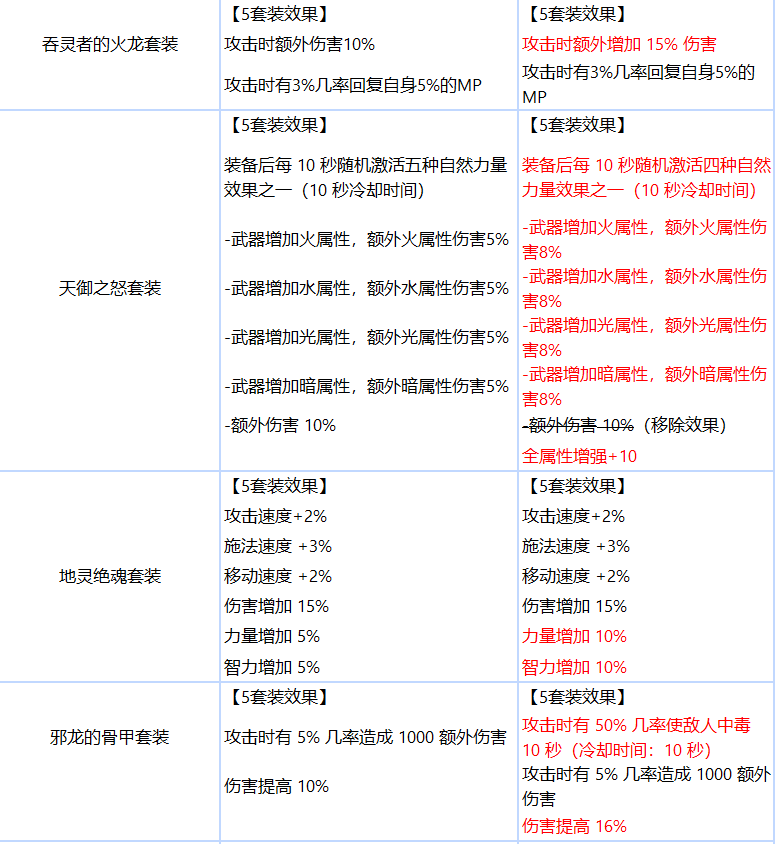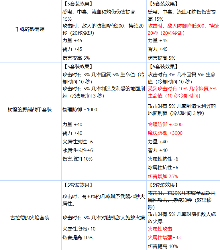 三、史诗装备和套装调整