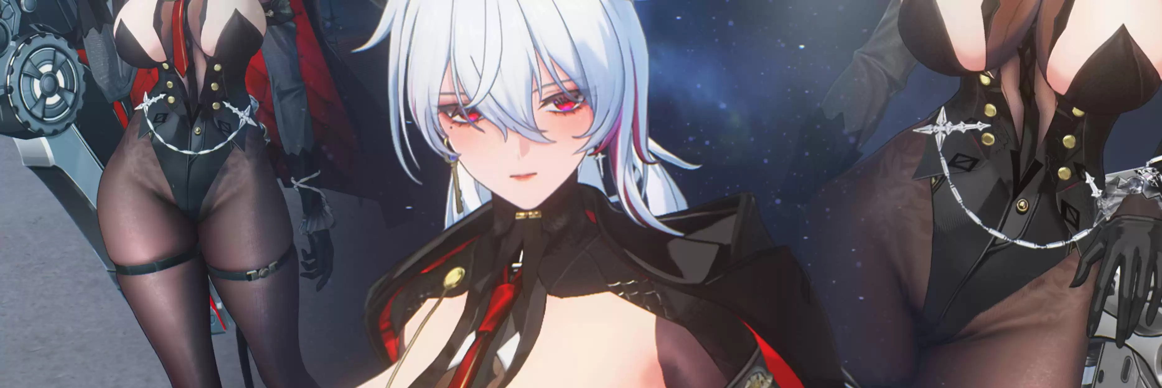 - 改色:衬衫灰改黑(更像兔女郎),胸前改黑斯,加浓脸装、武器改银色,具体如图。(配色有点像《helltalker》?)