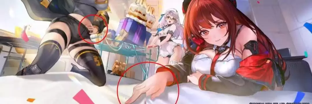 今年早些时候,由《剑星》工作室Shift Up开发的移动端第三人称射击游戏《胜利女神:妮姬》曾陷入一场争议风波。事情起因是官方为庆祝游戏上线1000天发布了一张贺图,图中三位游戏角色正在搬运礼物和带有"1000"数字装饰的蛋糕。表面看来这只是张普通的宣传图,但很快在韩国引发轩然大波——许多民众指责图中暗含反男性手势。