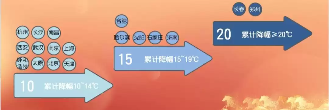 同时,北方大部将遭遇6至10℃降温,内蒙古、吉林、辽宁北部等局地降幅可达10至14℃,极端区域接近16℃,哈尔滨气温将从9℃骤降至-9℃。