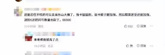 玩家们的愤怒情绪在评论区彻底爆发:有人指出 “本身难度就不平衡,运转削弱可以理解,但每次先考虑削弱不考虑加强真的是很傲慢的行为”,更有玩家质疑制作组 “但凡玩过五局以上 a9,就绝对不会砍问号数量”。