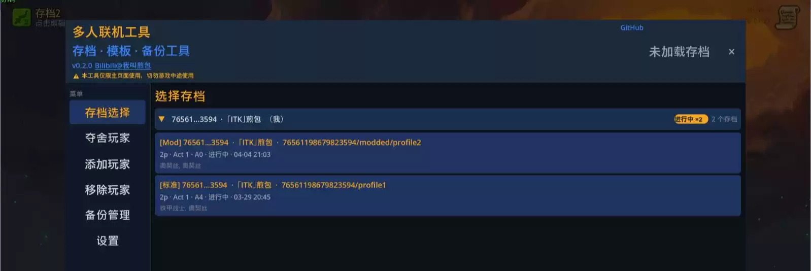夺舍玩家 移除玩家 中途添加玩家(核心功能!!!可以让你游戏外的好朋友不用再等待就可以加入游戏!)还有备份管理,防止崩档。