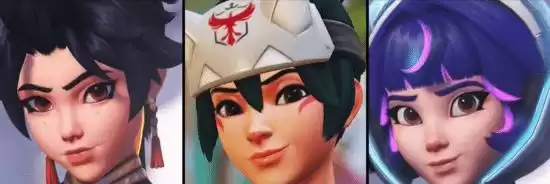 安燃(下图左一)是《守望先锋》前一段时间推出的中国背景女英雄,由于在设定上安燃出身“火学院(武术、军事)”,加之对雾子(下图左二)、朱诺(下图右一)等新女英雄面部“幼萌”的审美疲劳,部分玩家认为,安燃应当更具英气。当然,也有很多玩家持反对意见,但总之,安燃的面部模型曾引起了不小的争议。