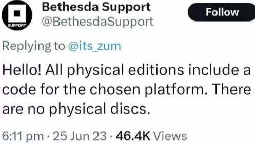 日前,B社在回复网友提问时称《星空》的所有实体版都只有数字兑换码(后被删除),这也引发了很多网友针对是否需要实体版的议论。