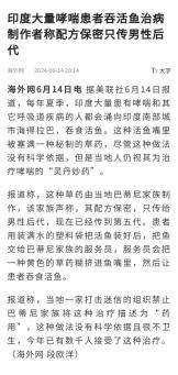 印度大量哮喘患者吞活鱼治病,制作者称配方保密只传男性后代