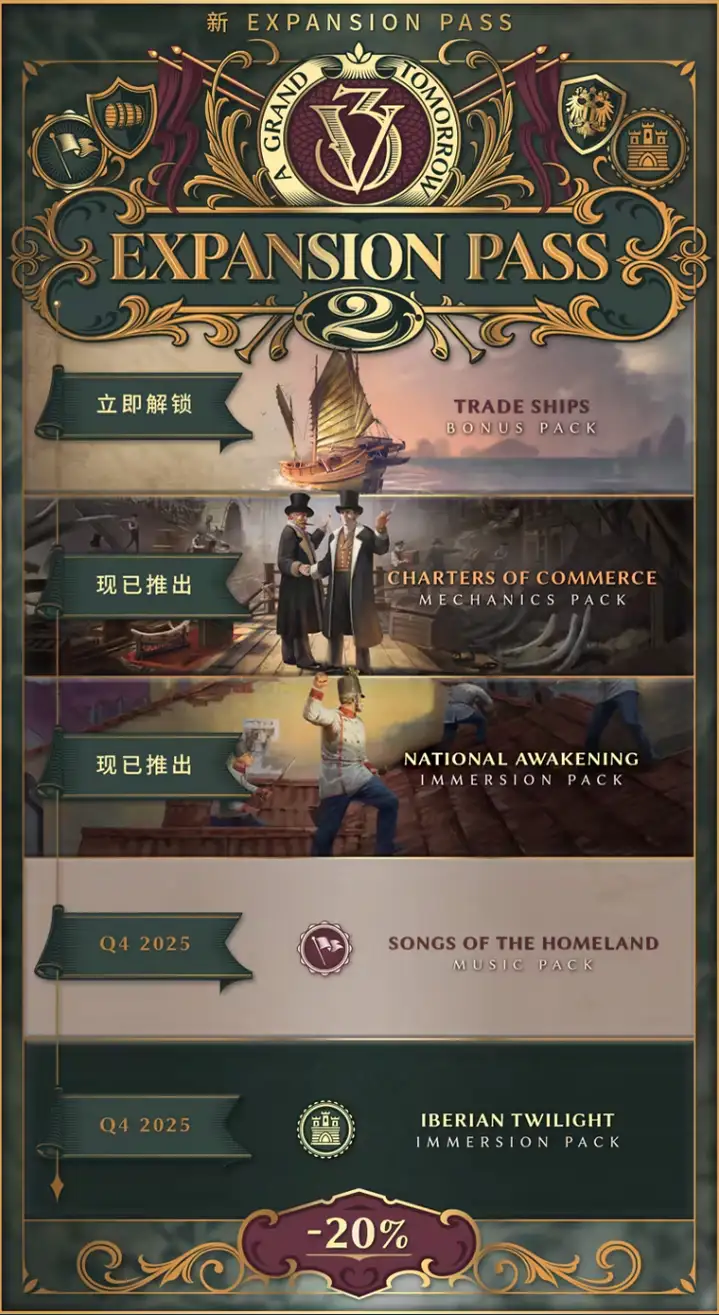 9月23日,DLC狂魔Paradox Interactive推出的最新社会模拟游戏《维多利亚3》迎来了全新内容扩展包“民族觉醒”,该DLC目前已正式上线,售价为48元。已购买《维多利亚3》第二张季票的玩家可直接获取,助力玩家的国家迈向更高的经济成就和繁荣。