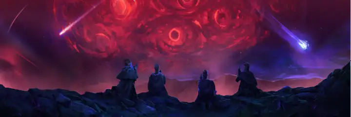 现实只是浩瀚颤动之网中的一缕丝线。在“虚境幽影”中,帝国将伸手超越实质领域,调和于古老之力,并与超越时间的存在进行交易。灵能光环自中心荡漾开来,扭曲星系,重塑命运。当灵督与灵能腐化展开无声之战时,虚境超主汇聚而至,他们的馈赠丰厚,却同样索求不已。探入愈深,回归愈难。那段从“机械纪元”启程、在“万物竞发”深化的旅程,如今在虚境幽影中揭示了最令