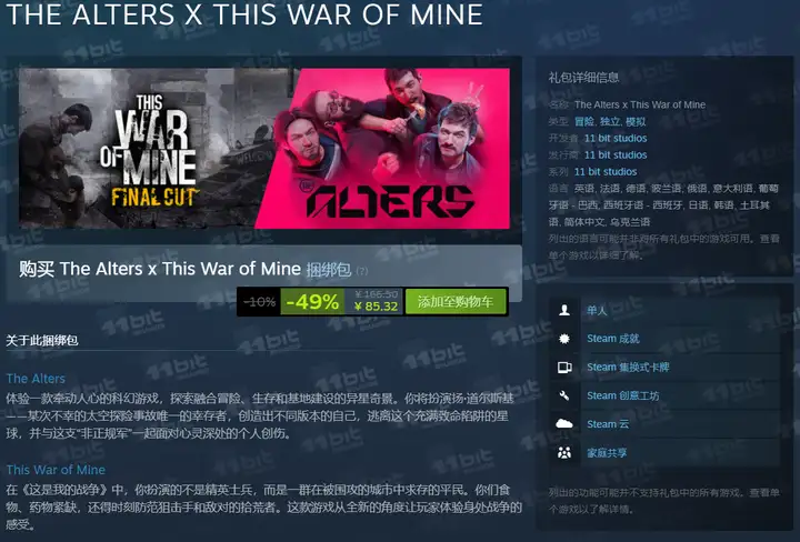 与此同时,大家也不要忽略了波兰厂商11bitstudios今年的一款新游戏,《多重人生》也迎来了新史低折扣活动,原价109元的标准版目前仅需八折即87.2元,在你盒盒商城券